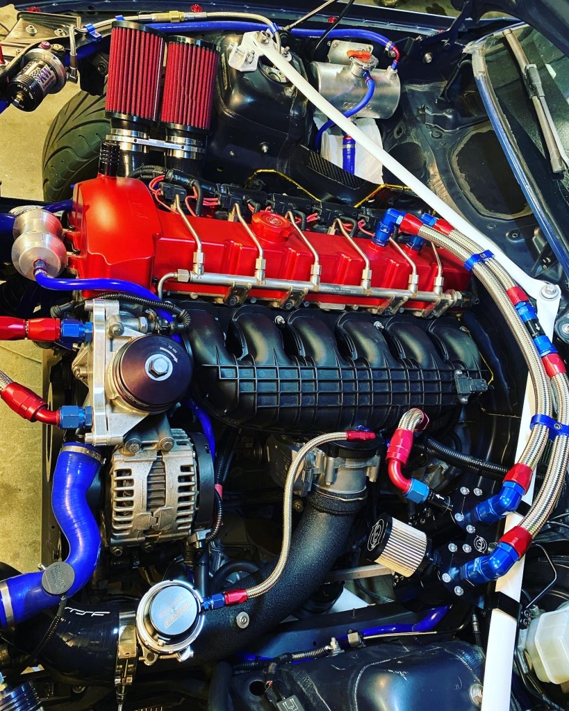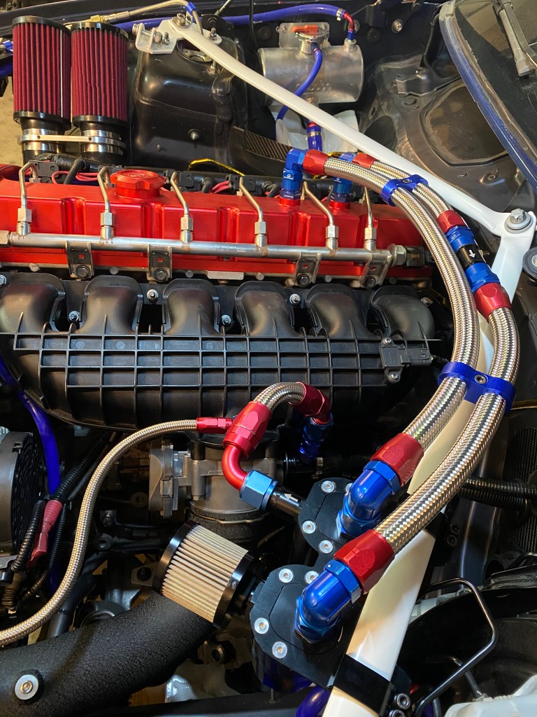 Der Einbau des restlichen externen PCV-Systems war sehr einfach. Die Drosselklappe dient als Unterdruckquelle und zieht die Blowbygase im Leerlauf über eine Catch Can sowie ein Rückschlagventil aus dem Kurbelwellengehäuse (Leerlaufseite). Unter Last schliesst das Rückschlagventil auf der Leerlaufseite und das Rückschlagventil auf der Lastseite öffnet. Auf der Lastseite werden die Blowbygase über eine Catch Can sowie ein Luftfilter an die Atmosphäre freigegeben. Anhand eines „Vacuum Relief Valves“ wird die Menge an Unterdruck im System gesteuert. In meinem Fall öffnet das Ventil bei 12 InHg Unterdruck. Nach diesem Umbau sollte Schluss sein mit verdreckten Einlassventilen : – ) Anbei einige Impressionen des externen PCV-Systems: