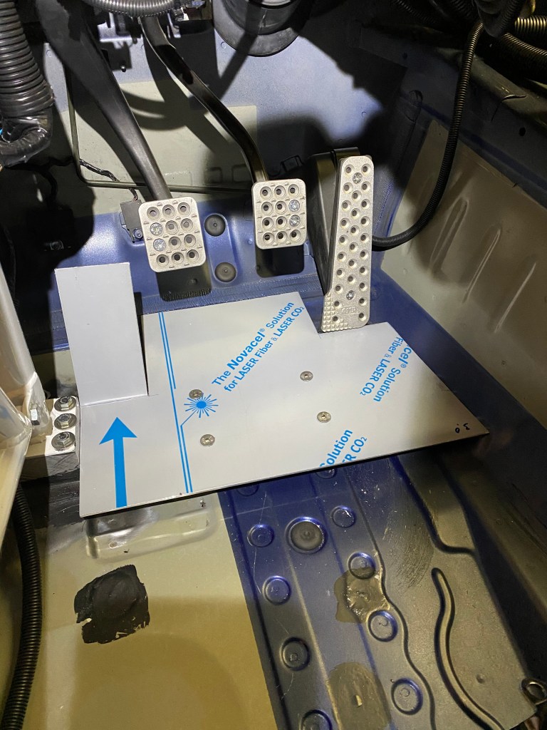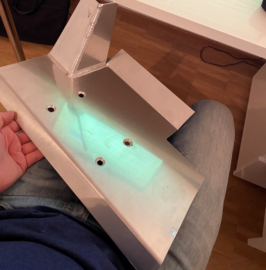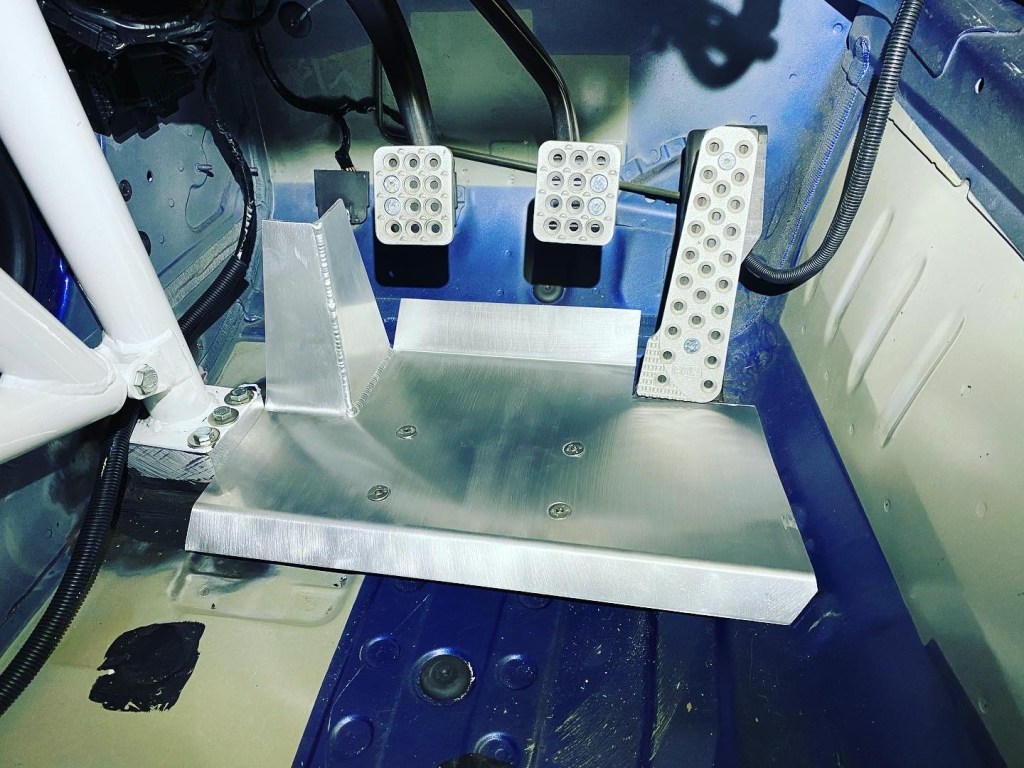 Ich habe mir aus einer Aluminiumplatte eine Fussstütze für den Fahrer gefertigt. Diese ist ziemlich simpel, erfüllt jedoch ihren Zweck : – )