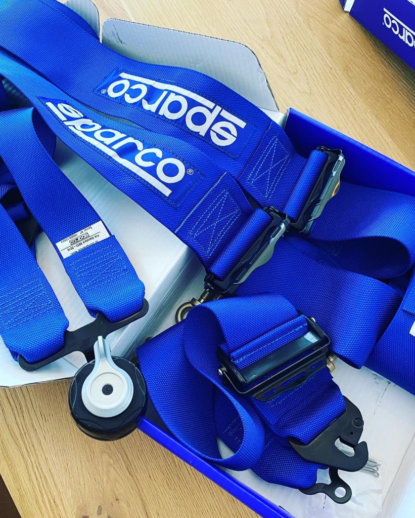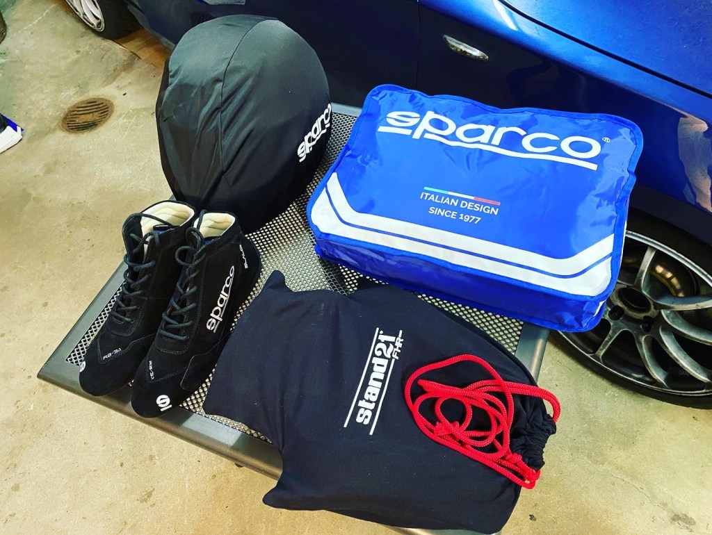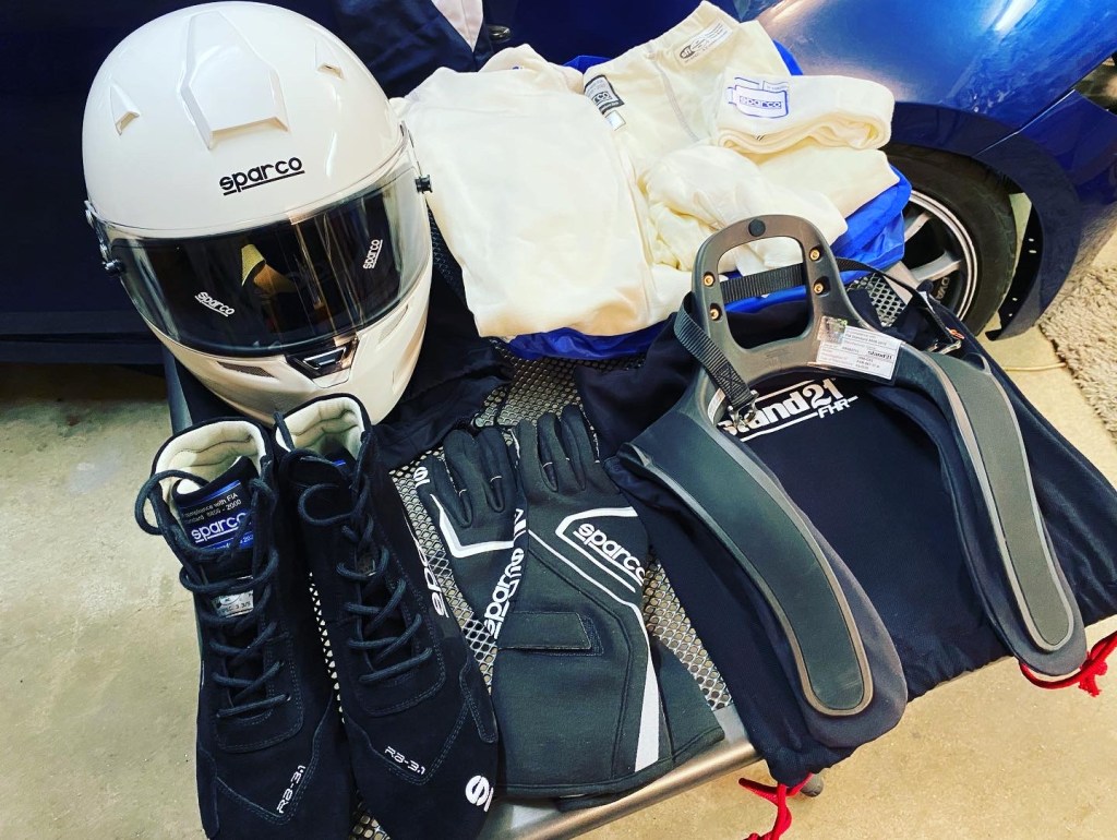 Zudem habe ich mir einen Rennoverall inkl. Handschuhe, Schuhe und feuerfester Unterwäsche von Sparco gekauft. Auch das HANS-System ist von Sparco (Stand 21: Club II – 20 Grad).