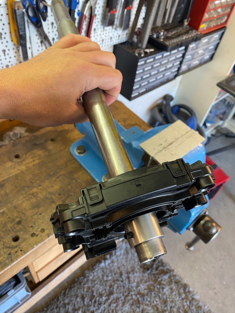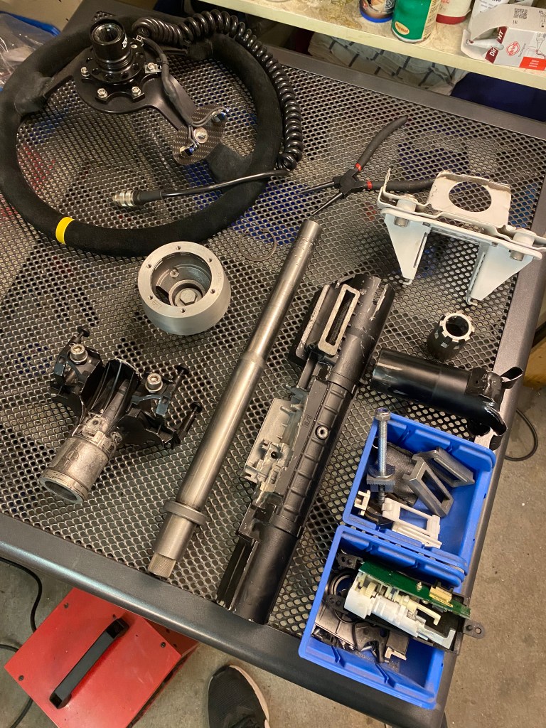 Die originale Lenksäule im BMW 135i ist schwer, klobig und verfügt über eine Wegfahrsperre, die das Fahrzeug auf der Rennstrecke nicht benötigt. Um die Lenksäule leichter und simpler zu gestalten, habe ich diese modifiziert. Bevor ich die einzelnen Schritte zum endgültigen Resultat aufzeige, möchte ich vorgängig ein Bild des Endresultats zeigen 🙂
