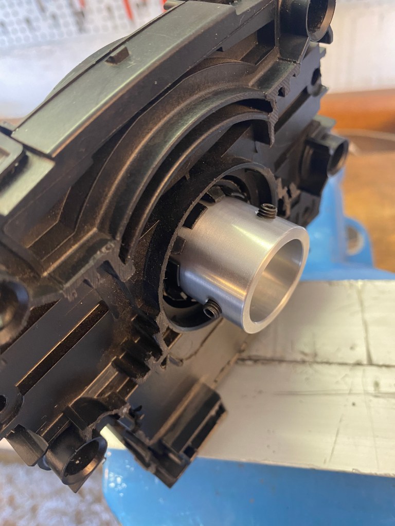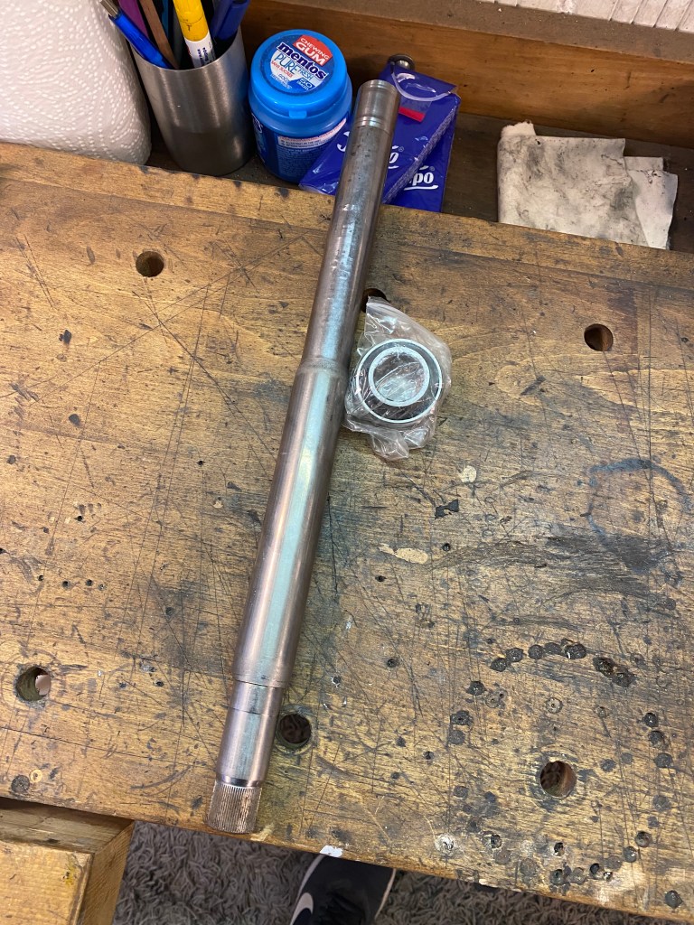 4. In einem vierten Schritt musste ich den Innenverzahnten Teil der Lenksäule modifizieren. Den Aussendurchmesser der Lenksäule wurde auf 26mm abgedreht, damit die Stehlager passten und der Sparco Snap Off für das Lenkrad wurde direkt auf die Lenksäule geschweisst. Nach dem Schweissen und nochmaligen überdrehen ist die Schweissnaht nicht mehr zu sehen 🙂