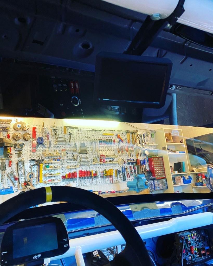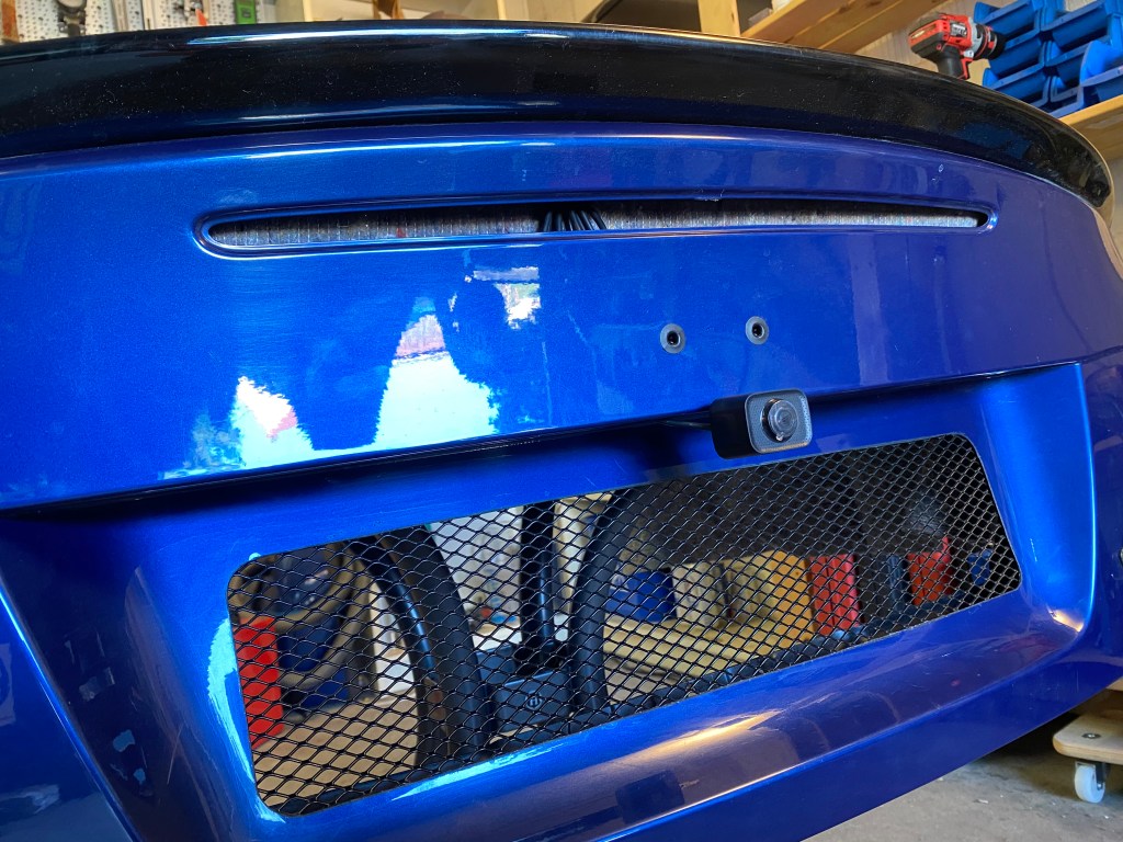 Mit der Sicherheitszelle und dem Heckspoiler im Sichtfeld sowie dem Helm auf, ist die Überischt im Auto relativ schlecht. Um auf der Rennstrecke den Verkehr hinter mir besser im Blick zu haben, habe ich den Rück- bzw. Innenspiegel durch eine Kamera ersetzt. In Kombination mit den beiden Seitenspiegeln, sollte ich so eine bessere Übersicht gewinnen.