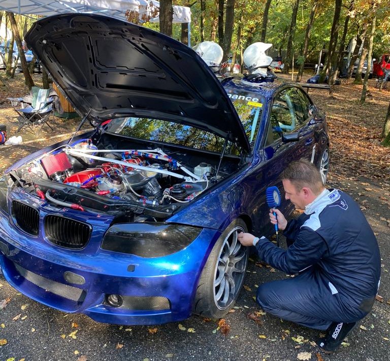 Gefahren wurde an beiden Tagen die lange Variante (3.7km) im Format „Open Pitlane“. Abgesehen von Problemen mit der Ladedruckregelung hat das Auto gut funktioniert. Die Vibrationen im Antriebsstrang, die ich in Dijon noch hatte, sind durch die Gummi Gelenkscheiben an Differential und Getriebe deutlich verringert und so hatte ich diesbezüglich Ruhe. Da ich das erste Mal in Anneau du Rhin gefahren bin, war ich am Samstag vor allem damit beschäftigt die Rennstrecke kennenzulernen und die Linie zu suchen. An dieser Stelle ein riesengrosses Dankeschön an Eric von Sportfahrer.ch. Ich durfte mit seinem Clio Cup mitfahren und dabei hat er mir die Linie sowie die Bremspunkte gezeigt.