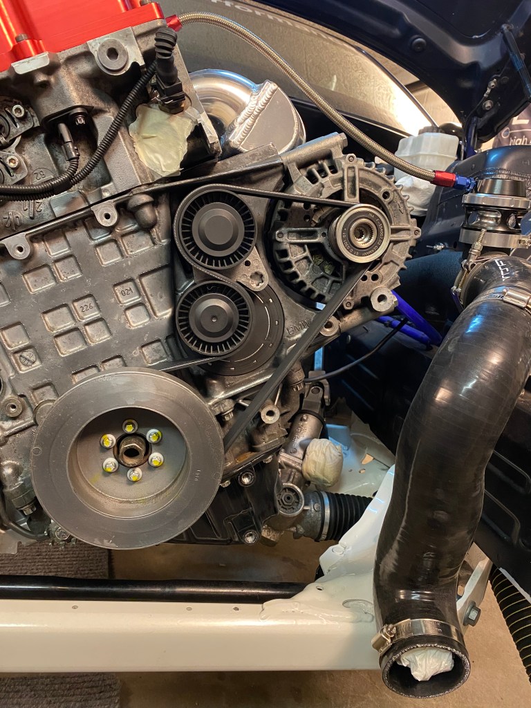 Ich habe mich entschieden die elektrohydraulische Servopumpe vom Mercedes A-Klasse (W168) zu verbauen. Original hat der 135i eine hydraulische Servopumpe, die über den Keilrippenriemen angetrieben wird. Durch den Umbau auf eine elektrohydraulische Servopumpe wird der Kurbeltrieb entlastet, da die Kurbelwelle weniger Verbraucher antreiben muss. Dazu musste ich einen kürzeren Keilrippenriemen (1093 mm) verbauen. Neu muss die Kurbelwelle nur noch die Lichtmaschine antreiben (und die hinteren Räder natürlich 🙂 ).