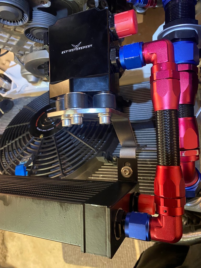 Neben einem Öldrucksensor habe ich zwei Sensoren für die Öltemperatur vor und nach dem Ölfilter/Ölkühler verbaut. Die Sensoren sind von AIM und können direkt am AIM-Display angeschlossen werden. Der externe Ölfilterhalter kommt von BAT Motorsport.