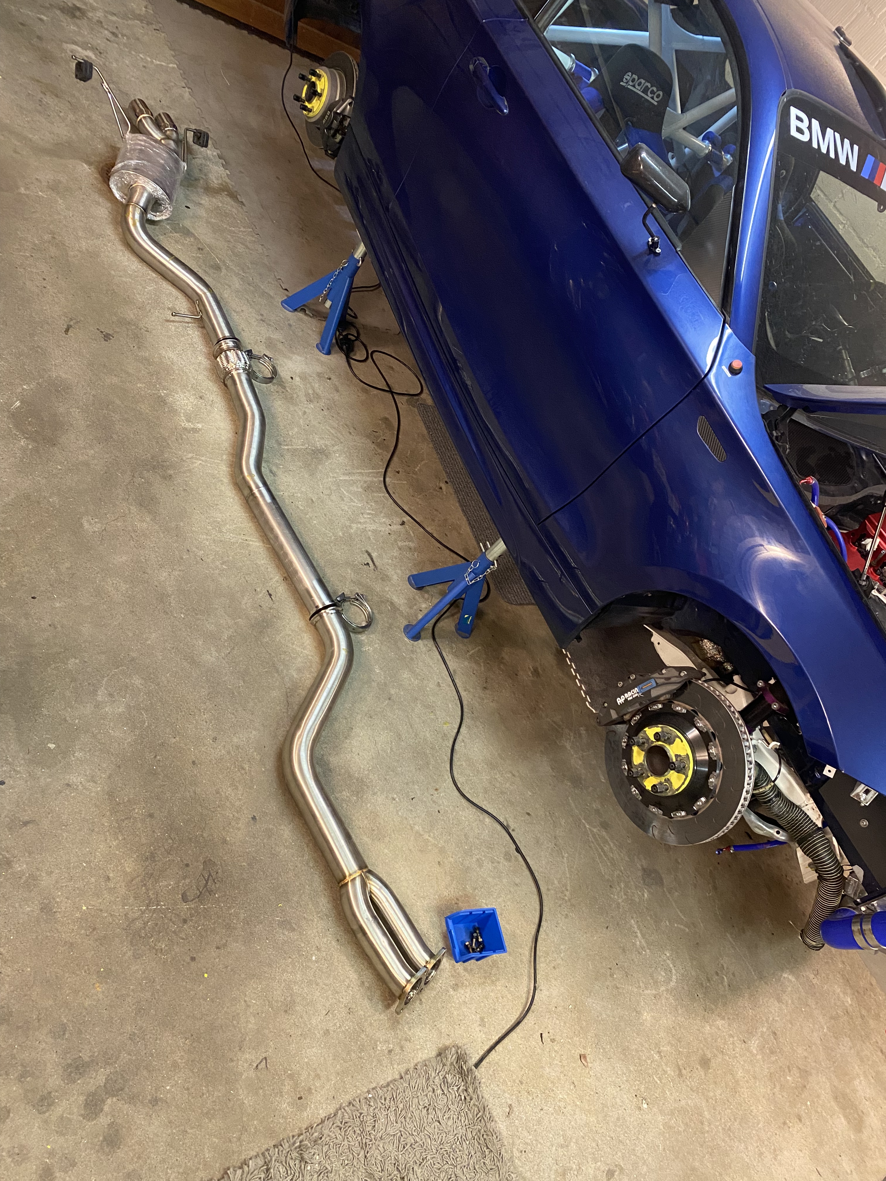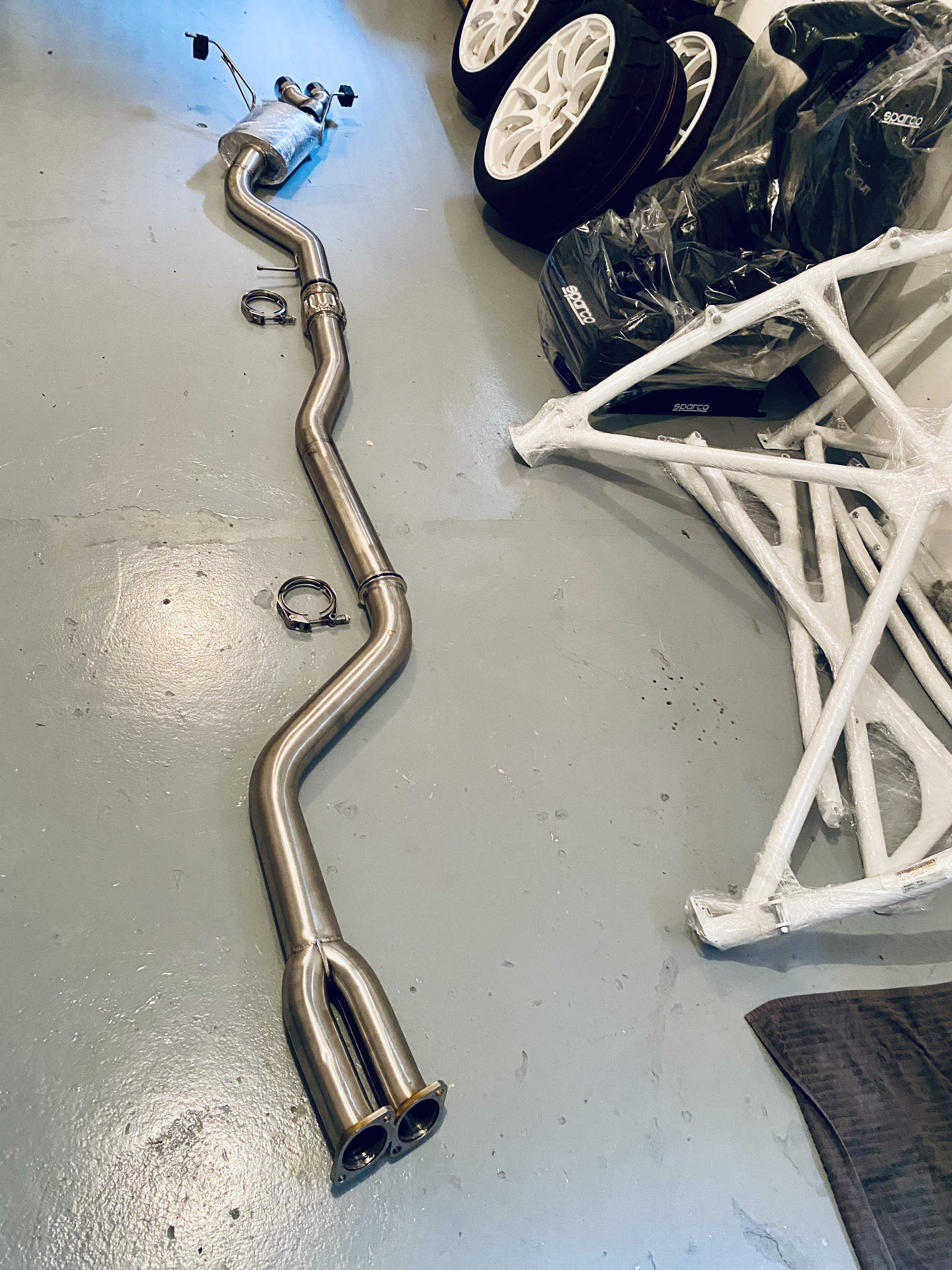 Nach dem finalen Durchschweissen der verbleibenden Stellen passt die Abgasanlage wie sie soll, ist einfach zu montieren und ich bin sehr auf den Sound gespannt 🙂 Ich hoffe die Lärmvorschriften der gängigen Rennstrecken werden eingehalten. Mit der zuvor verbauten Supersprint-Anlage (mit lediglich einem Endschalldämpfer) hatte ich bis anhin gar keine Probleme. Hoffen wir das bleibt so.