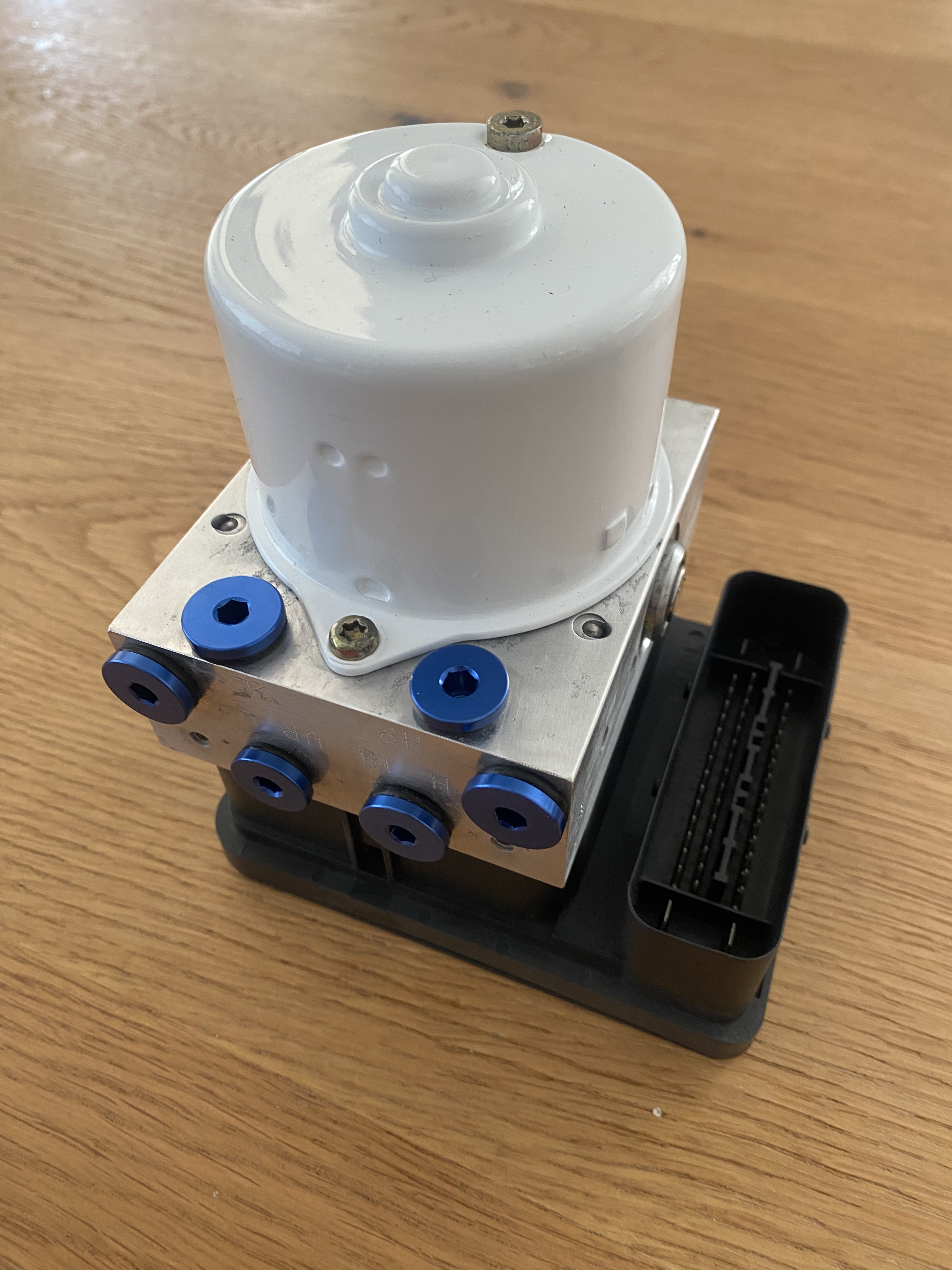 Da ich künftig eine stehende Pedalerie ohne Bremskraftverstärker verbaue, werde ich einen Waagebalken mit zwei getrennten Geberzylindern nutzen. Das MK60(R) ist eines der wenigen Systeme, das über zwei externe Drucksensoren verfügt. Dadurch kann das ABS die Drücke der Vorder- und Hinterachse separat verarbeiten, was eine präzise elektronische Bremskraftverteilung und somit eine echte Waagebalken-Kompatibilität ermöglicht.