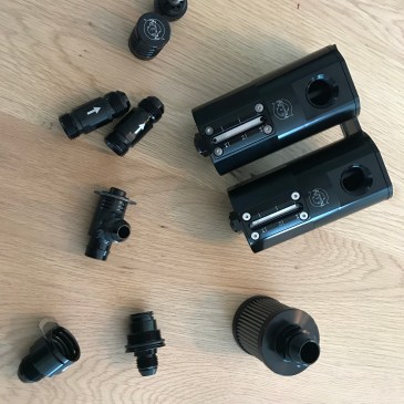 Das originale sehr restriktive Ansaugsystem habe ich durch ein sehr kurzes Ansaugsystem ersetzt, das komplett auf der Seite der Turbos verbaut wird und die Frischluft durch zwei Pilzluftfilter ansaugt. Somit sollten die Turbos jederzeit ausreichend mit Frischluft versorgt sein. Ich habe mich für das Kit von ARM Motorsports entschieden. Inkludiert ist im Kit ein Hitzeschutzschild, … Mehr Ansaugsystem (ARM Motorsports)